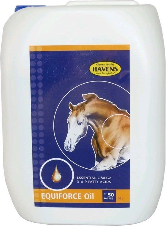 EquiForce Oil is samengesteld uit 3 verschillende koudgeperste plantaardige oliën om zo de perfecte verhouding van de belangrijke essentiële vetzuren (omega 3-6- 9) te creëren. Paarden zijn niet in staat om essentiële vetzuren zelf te produceren en deze moeten daarom via het rantsoen verkregen worden. Essentiële vetzuren (voornamelijk omega-3) versterken het immuunsysteem en de vitaliteit. Tevens verantwoordelijk voor een glanzende vacht, het voorkomen van droge en brokkelige hoeven, verminderen van huidproblemen (zoals een droge, geïrriteerde of jeukende huid). Als extra voordeel is de olie niet stroperig waardoor deze probleemloos uit de verpakking is te gieten of te pompen.