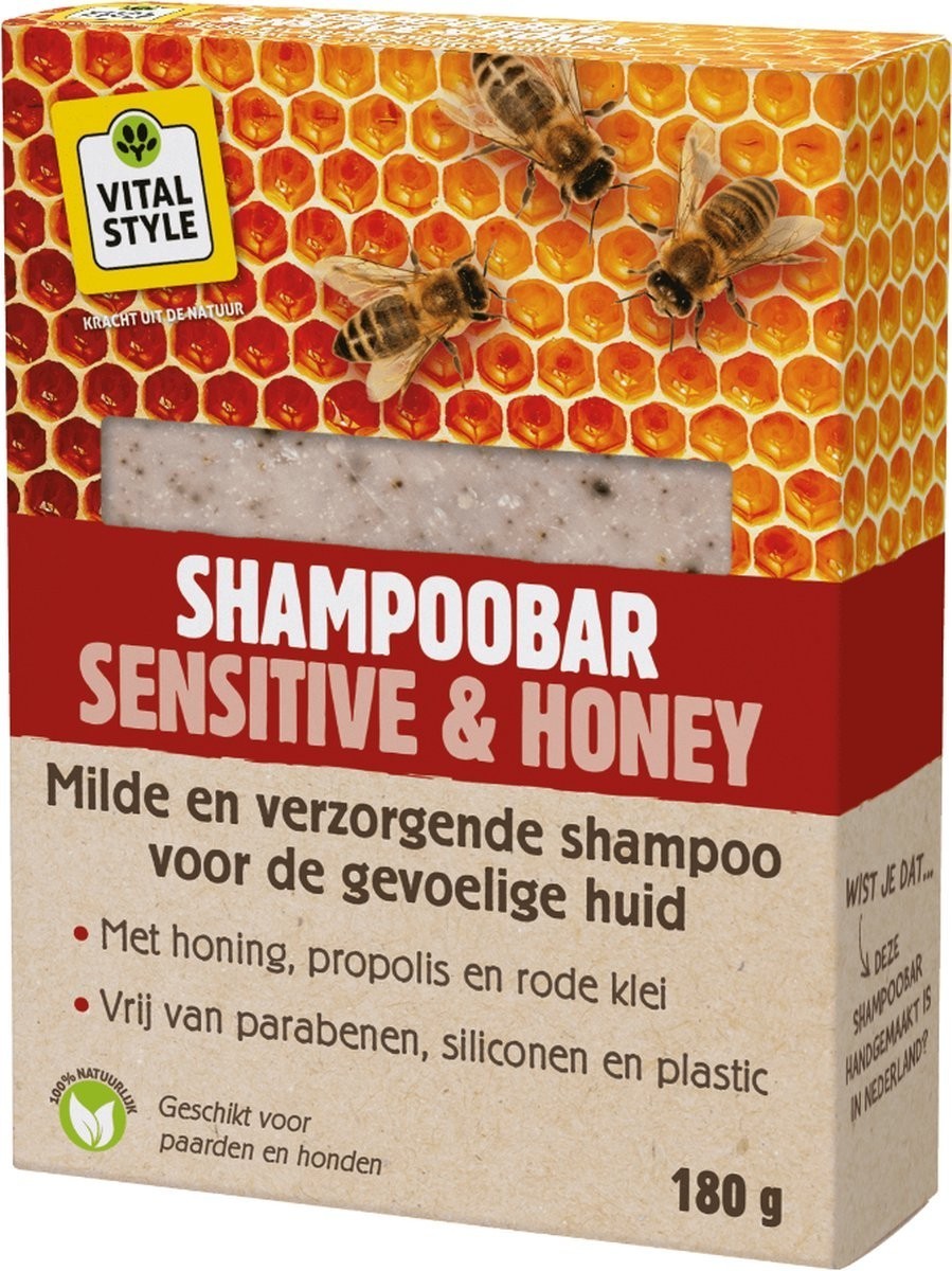 VITALstyle Sensitive & Honey Shampoobar is een milde en verzorgende shampoo voor de gevoelige huid, speciaal voor paarden en honden.
