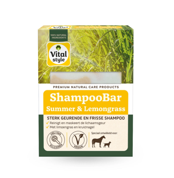 Summer & Lemongrass is een handgemaakte shampoobar speciaal voor een langdurige frisse lichaamsgeur van paarden en honden. De shampoobar heeft een sterke, maar frisse geur om de natuurlijke lichaamsgeur of zweetgeur te maskeren. Summer & Lemongrass is 100% natuurlijk, vegan, bevat frisse en verzorgende ingrediënten en is vrij van parabenen, siliconen en plastic.
