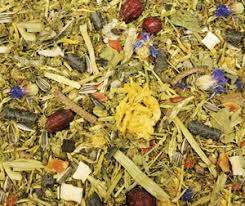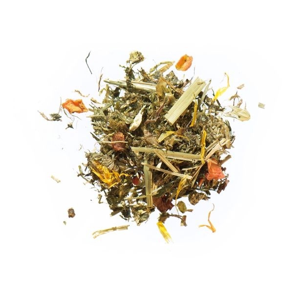 Weidegrassen en kruiden (hetelucht gedroogd, gehakseld)², lijnzaadschilfers (gepelleteerd), zonnebloemzaad, appelpulp (geperst, gedroogd), zwartekomijnschilfers (gepelleteerd), wortelen (gedroogd), rozenbottel (gedroogd), lijnzaadolie, pastinaak (gedroogd), rode biet (gedroogd), goudsbloembloesem (gedroogd), frambozenbladeren (gedroogd), bramenblad (gedroogd), korenbloembloesem (gedroogd), camelinaolie