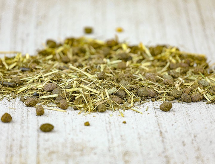 Mengeling zonder haver, laag suiker zetmeel en veel vezels voor paarden met maagproblemen.