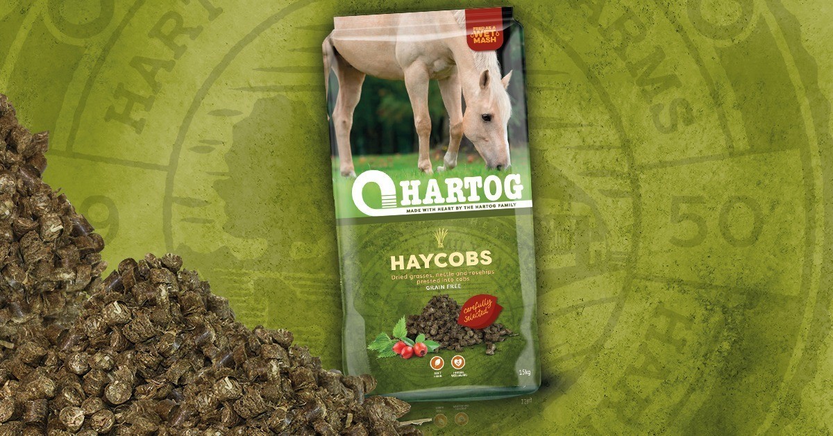 Hartog Haycobs: een ruwvoer product in de vorm van cobs die je moet weken in water.