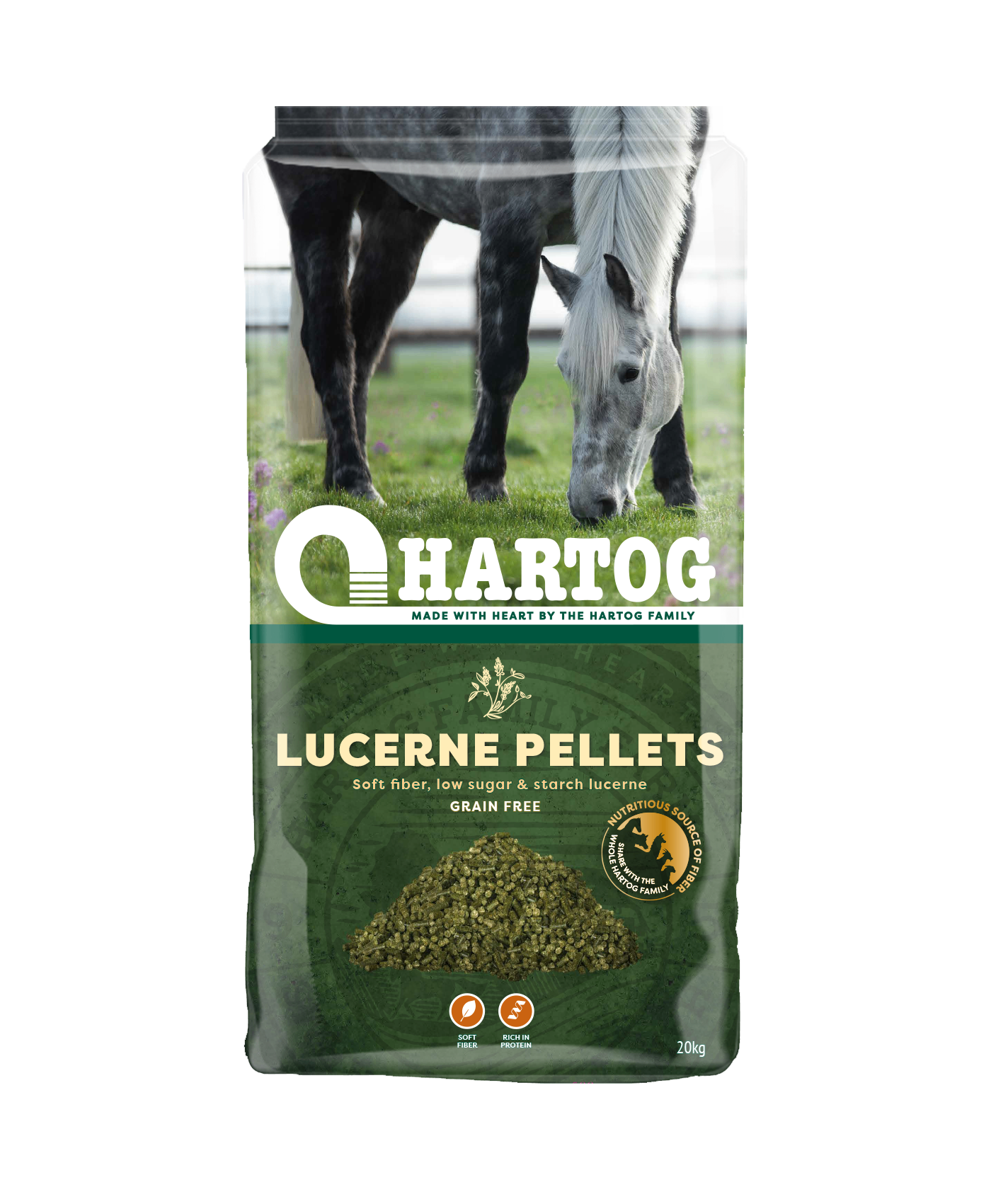 Ontdek de kracht van Hartog Lucerne Pellets. Deze hoogwaardige luzerne brok is rijk aan essentiële voedingsstoffen en vormt een uitstekende aanvulling op het rantsoen van jouw paard.