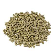 Mengsel van gedroogde grassoorten (timothee, kropaar, rietzwenk, veldbeemdgras, beemdlangbloem) 96%, duizendblad, smalle weegbree, rode klaver, witte klaver.