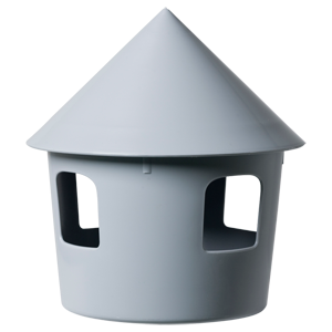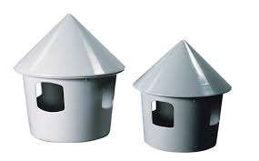 De drinkpot voor duiven heeft een deksel in de vorm van een punt waardoor de duiven niet op de drinkbak kunnen gaan zitten.