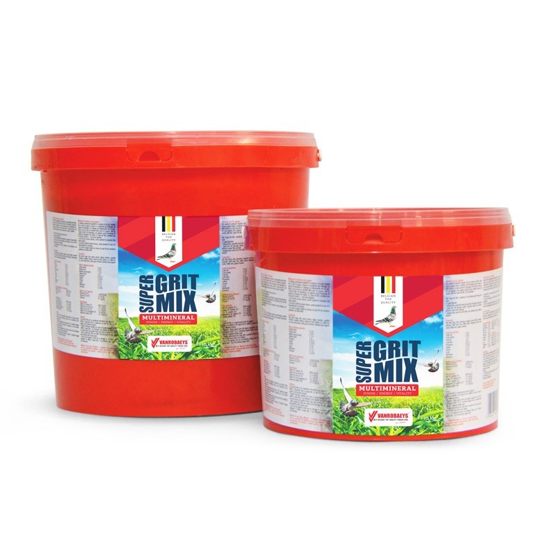 GEEN VERZERNDING MET PAKKETDIENST. Vanrobaeys Super Grit mix 10kg EMMER Vanrobaeys Super Grit mix ZAK 20kg Vanrobaeys Super Grit Mix Aanvullend duivenvoeder Deze perfect uitgebalanceerde mineralen gritmengeling, 100 % natuurlijk, bevat alles waaraan een duif behoefte heeft naast de graanmengelingen. Met de “Super Grit Mix” van Vanrobaeys, krijgen uw duiven meer kracht, energie en vitaliteit. Dit mineralen mengsel is een echte noodzaak op het hok en tevens een lekkernij voor uw duiven. Aanbevolen voor Rui Kweek Vlucht Thuiskomst Winterperiode Snelheid Halve fond Fond Samenstelling: grit, roodsteen, silex, kalksteen, zeewier, oesterschelpen, zeeschelpen, houtskool, platzaad, rijst, millet geel, raapzaad, katjang idjoe, cardy, haver gepeld, duivenmineralen. Analyse: ruw as 79.6%, ruw eiwit 3.32%, ruw vet 1.51%, ruw celstof 2.4%, fosfor 0.201%, natrium 0.242%, calcium 13.6%, lysine 0.11%, methionine 0.11%, kalium 0.223%. Toevoegingsmiddelen: vit A <200 IU/kg, vit D3 310 IU/kg, vit E 9.9 mg/kg Dagelijks in een aparte voerbak verstrekken Lees meer...