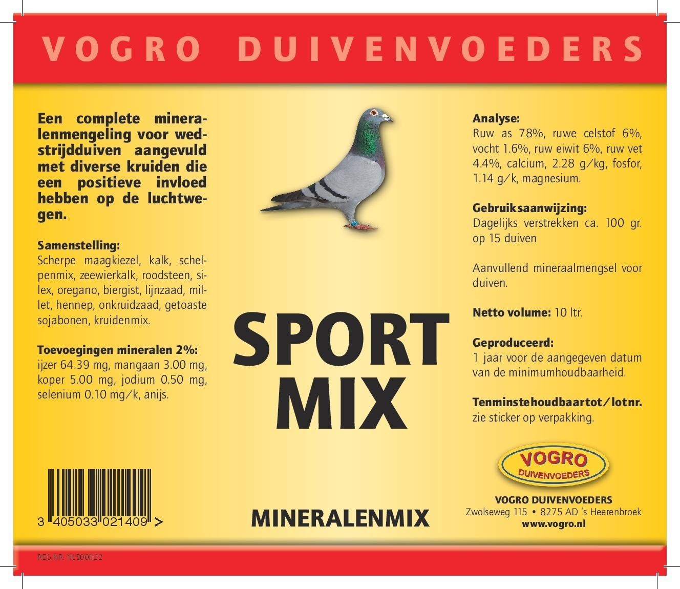 Sport Mix is een complete aanvullende mineralenmengeling voor wedstrijdduiven aangevuld met diverse kruiden die een positieve invloed hebben op de luchtwegen.
