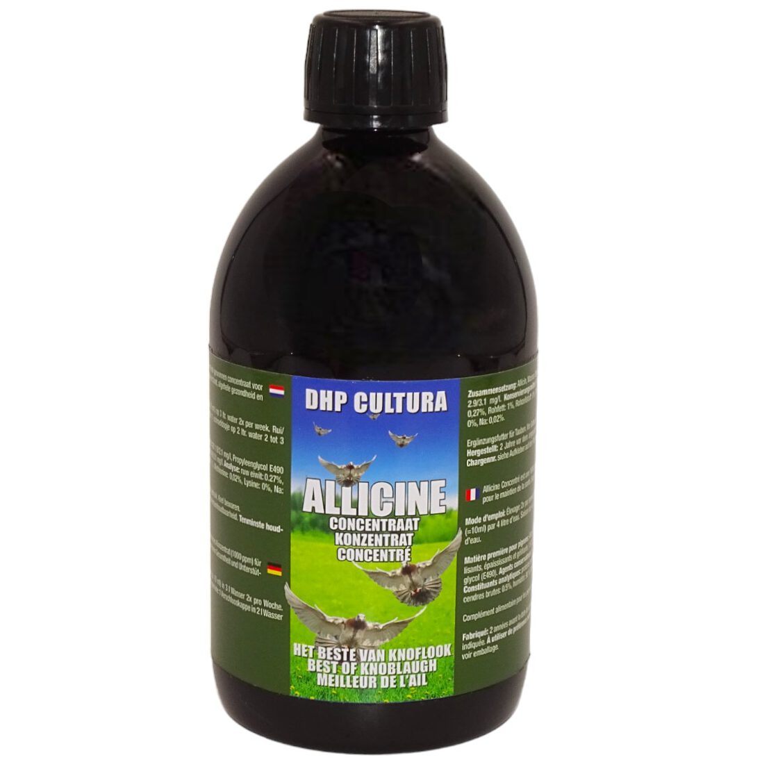 Allicine Concentraat is een gestabiliseerd 1000 ppm uit knoflook gewonnen concentraat voor duiven.