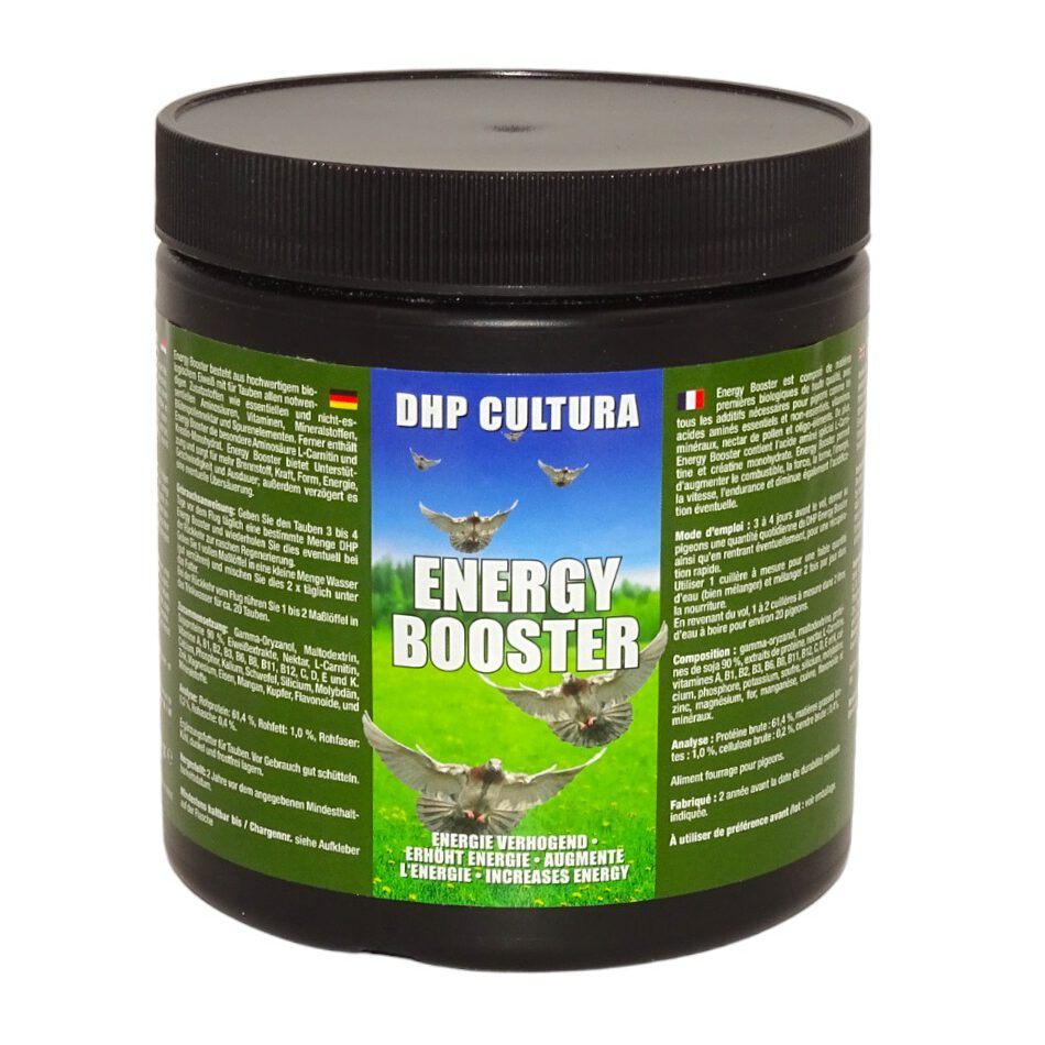Energy Booster is samengesteld uit biologisch hoogwaardig eiwit met voor duiven alle noodzakelijke toevoegingen als essentiële en non essentiële aminozuren, vitamine, mineralen, stuifmeelnectar en sporenelementen.