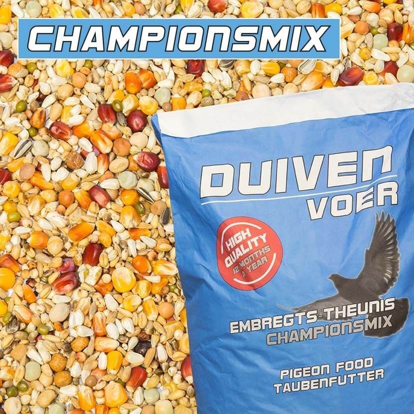 Embregts-Theunis Championsmix is een zak duivenvoer waarmee je al je duiven het hele jaar door op eenvoudige wijze voert.