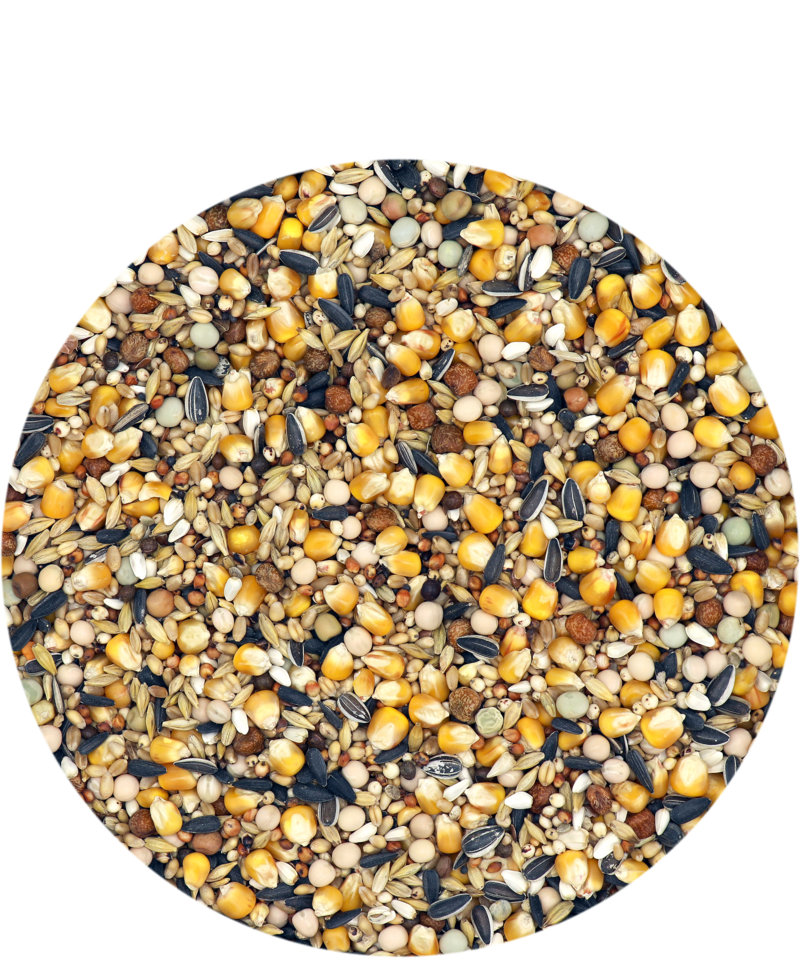 Mariman Rui Geel Cribbs 25kg Ruimengeling met gele cribsmaïs en veel kleine zaden om de duiven in ideale omstandigheden door de rui te laten gaan Gevarieerde ruimengeling met gele maïs. Samenstelling premium cribsmaïs 28%, maple peas 5%, dun peas 3%, gele erwten 8%, grote groene erwten 3%, vitsen 2%, witte duiventarwe 15%, gele dari 8%, rode dari 6%, cardy 3%, duivengerst 8%, gepelde haver 1,5%, kleine gestreepte zonnebloempitten 1%, zwarte zonnebloempitten 2%, boekweit 1%, gele millet 1%, bruin lijnzaad 2%, raapzaad 1,5%, zwart koolzaad 1% Analytische bestanddelen ruw eiwit 12,5%, ruw vet 6%, ruwe celstof 5%, ruwe as 2%, koolhydraten 61%, lysine 0,54%, methionine 0,20%, calcium 0,09%, fosfor 0,33%, natrium 0,01% Gebruiksaanwijzing Gemiddeld 30 g voeder per dag per duif en altijd zuiver drinkwater voorzien Tips Tijdens de rui mogen de duiven voldoende gevoederd worden om hun volledige verenkleed te kunnen wisselen. Let er echter op, als de duiven niet buiten komen, dat ze niet te vet worden. Lees meer...