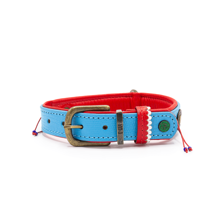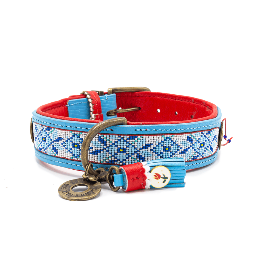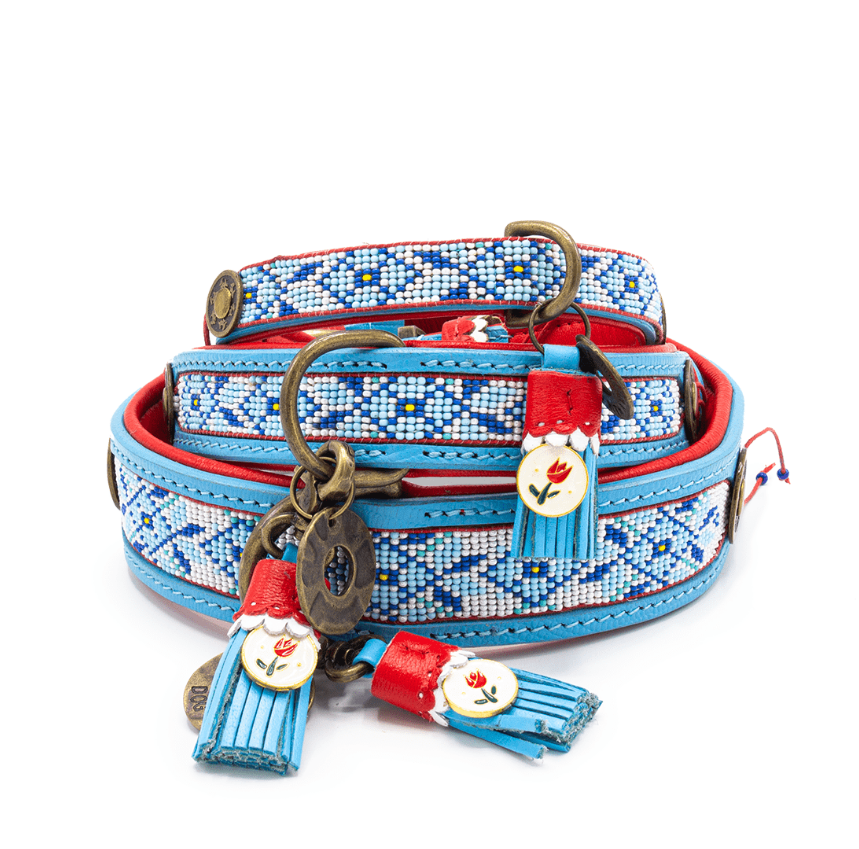 Geef je hond een trendy touch met onze Dutchie halsband, waar Nederlands erfgoed en stijlvol design samenkomen. Dit accessoire in Delfts blauw met rode details, verfraaid met handgeregen kralen, maakt van elke wandeling een modieus moment. En het mooie? Met jouw aankoop zet je ons werk voort om hondenwelzijn wereldwijd te ondersteunen, op een bescheiden maar krachtige manier.