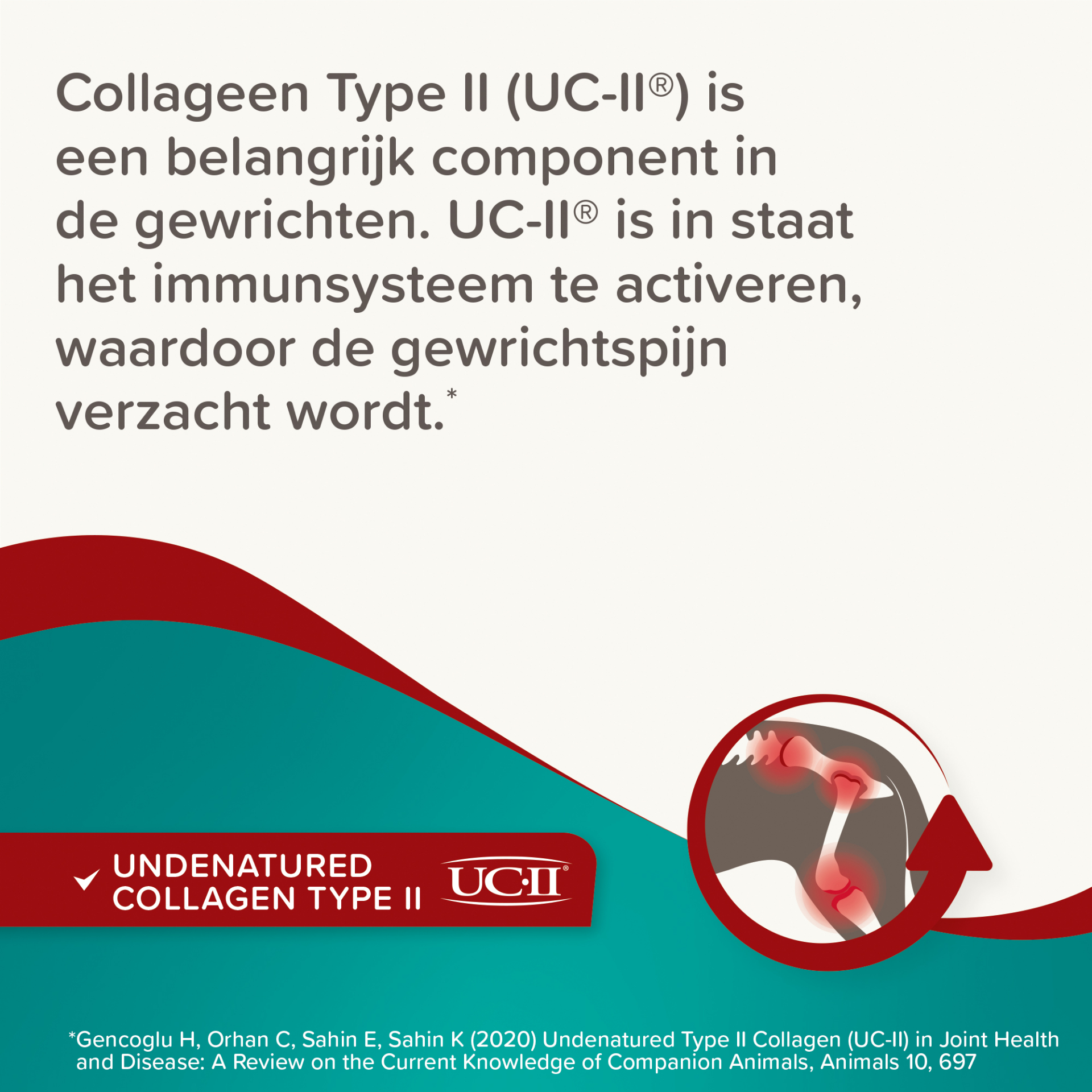 - Ingrediënten: granen, plantaardige bijproducten, vlees- en dierlijke bijproducten (waaronder kip 5,63%, UC-II® ongedenatureerd collageen type II (collageen & kaliumchloride 0,69%)), algen, oliën en vetten (omega-3 visolie 3,28%, zalmolie 1,5%), schaal- en weekdieren (D-Glucosamine Hydrochloraat 4,3%), vis- en vis bijproducten.