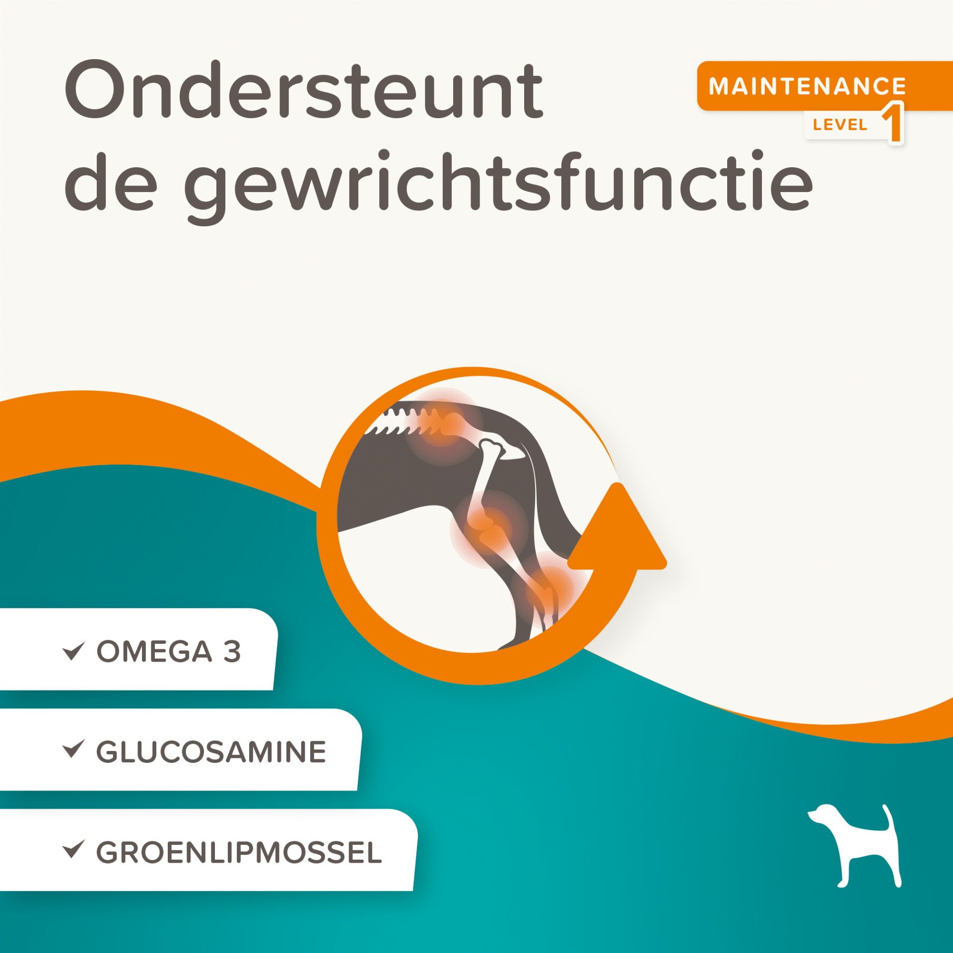 - Ingrediënten: Granen, plantaardige bijproducten, vlees- en dierlijke bijproducten, schaal- en weekdieren (glucosamine hydrochloride 2,23%, groenlipmossel als bron van glucosamine hydrochloride 2,23%), oliën en vetten (zalmolie 1,53%), vis en -bijproducten, mineralen, gisten