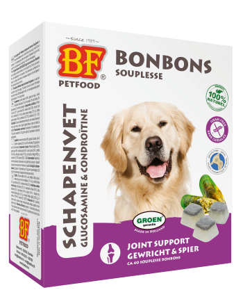 De originele Biofood schapenvet bonbon Souplesse is een ware delicatesse voor iedere hond, van puppy (vanaf 10 wk) tot senior.