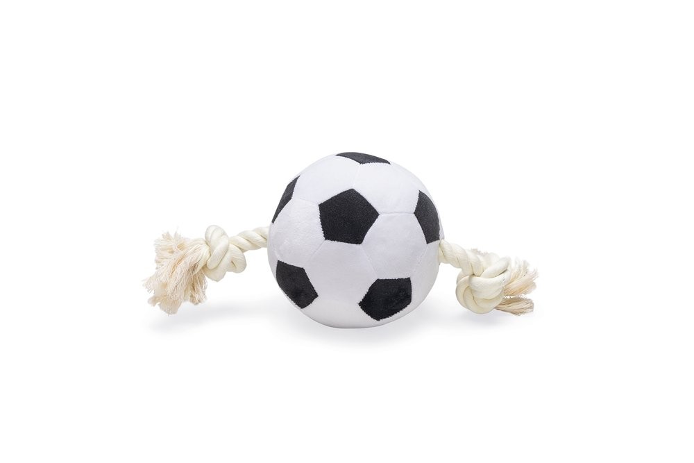 Speel samen met jouw hond met de Beeztees Voetbal met Touw! Deze pluche voetbal is perfect voor apporteer- en trekspelletjes. De voetbal bevat aan beide kanten flostouw, waardoor jouw hond de bal beter kan vasthouden en ermee kan slingeren. Het flostouw biedt jou ook extra grip, zodat je de bal eenvoudig kunt gooien. De zachte pluche buitenkant is prettig voor de bek van jouw hond en zorgt tegelijkertijd voor een comfortabel speel gevoel. Met deze voetbal beleef je samen met jouw hond urenlang speelplezier!