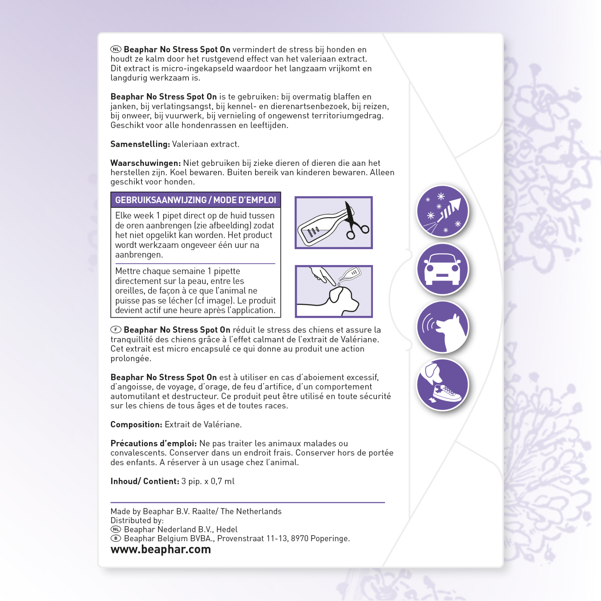 No Stress Spot On hond vermindert de stress bij honden en houdt ze kalm door het rustgevend effect van het valeriaan extract.