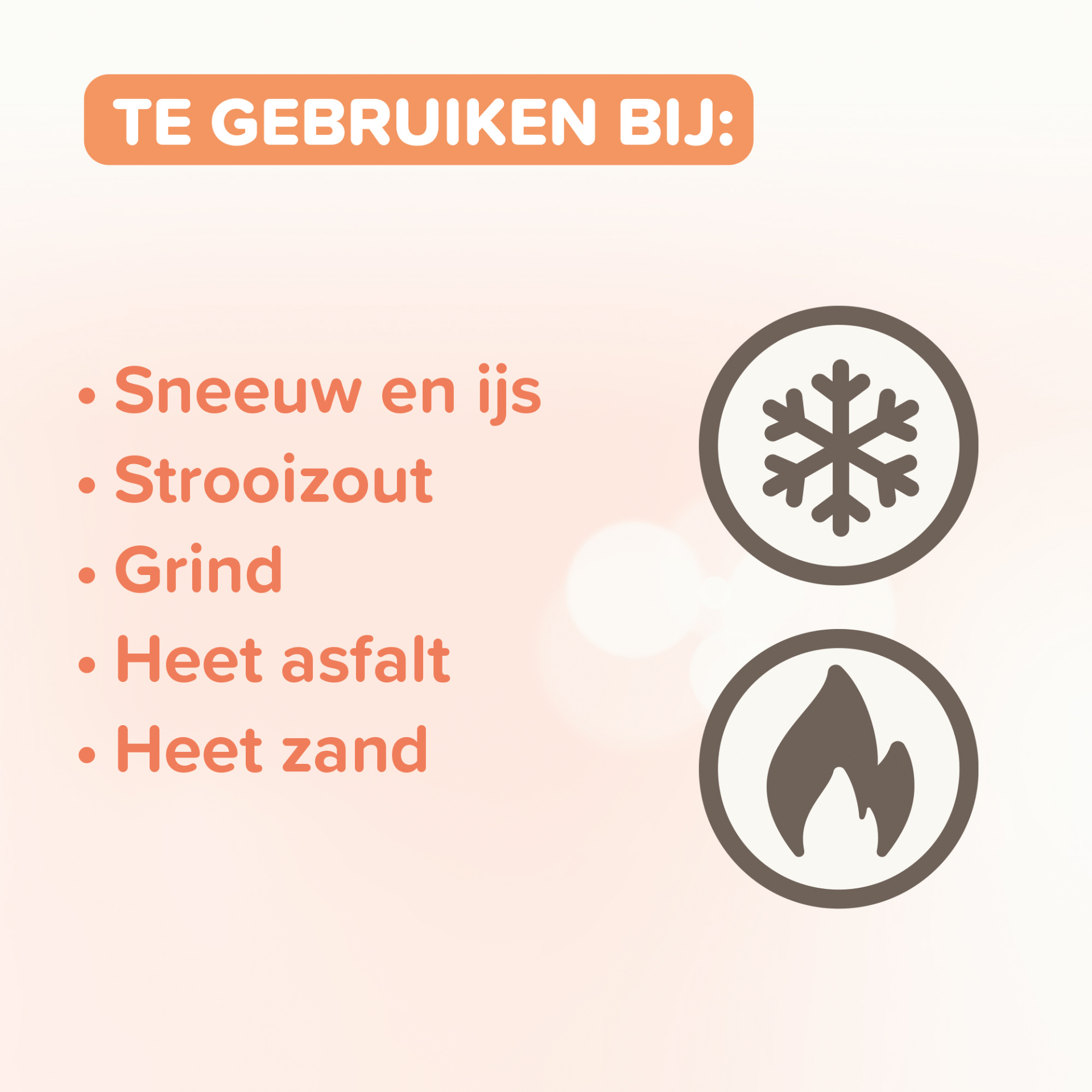 Pootjes zijn hierdoor beter bestand tegen sneeuw, strooizout, ijs, grind, heet asfalt of zand enz.