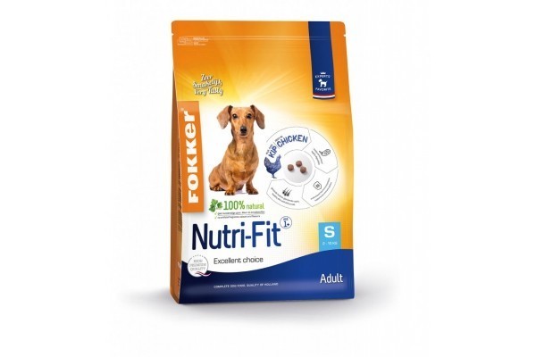 Fokker Nutri-Fit S is een high premium hondenvoeding voor volwassen honden van kleine rassen met een gewicht tot 10 kg. Om in optimale conditie te blijven verdienen kleine honden een hoog verteerbare en energierijke voeding. Fokker Nutri-Fit S bestaat uit kleine brokjes, die precies zijn afgestemd op de kaakgrootte van de kleine rassen. Noorse zalmolie ondersteunt een gezonde huid en een blijvend glanzende vacht. Fokker onderscheidt zich verder door de compacte, nagenoeg reukloze ontlasting. Door de hoge smakelijkheid eet uw hond Fokker Nutri-Fit  S met veel plezier.