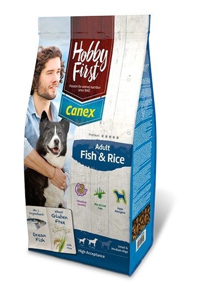 HobbyFirst Canex Adult Fish & Rice is een zeer licht verteerbare, volledige en uitgebalanceerde voeding voor (volwassen) honden van alle rassen, die aanleg hebben voor