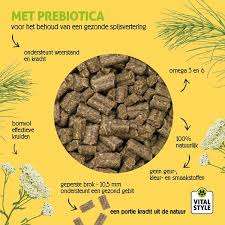 De eigenschappen en bereidingswijze van VITALstyle MAAG+DARM is anders dan van de andere krokante (geëxtrudeerde) VITALstyle brokken. De geperste brok heeft een hogere ingrediënten- en energiedichtheid per brokje dan een krokante (geëxtrudeerde) brok. Hierdoor hoef je per maaltijd minder MAAG+DARM te voeren, dan van andere brokken. Bij het eten van deze kleinere maaltijden is de belasting op de maag en darmen kleiner. Verder zijn bij het productieproces van MAAG+DARM de instellingen van de pers zodanig gekozen, dat de brok heel makkelijk uiteenvalt in de maag! Makkelijker dan de gemiddelde geperste brok in de markt. Ook de toevoeging van kruiden heeft hier invloed op.