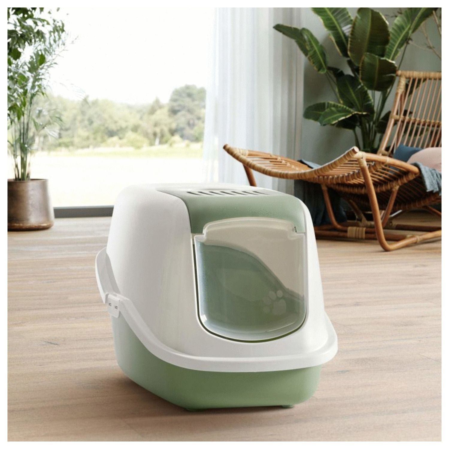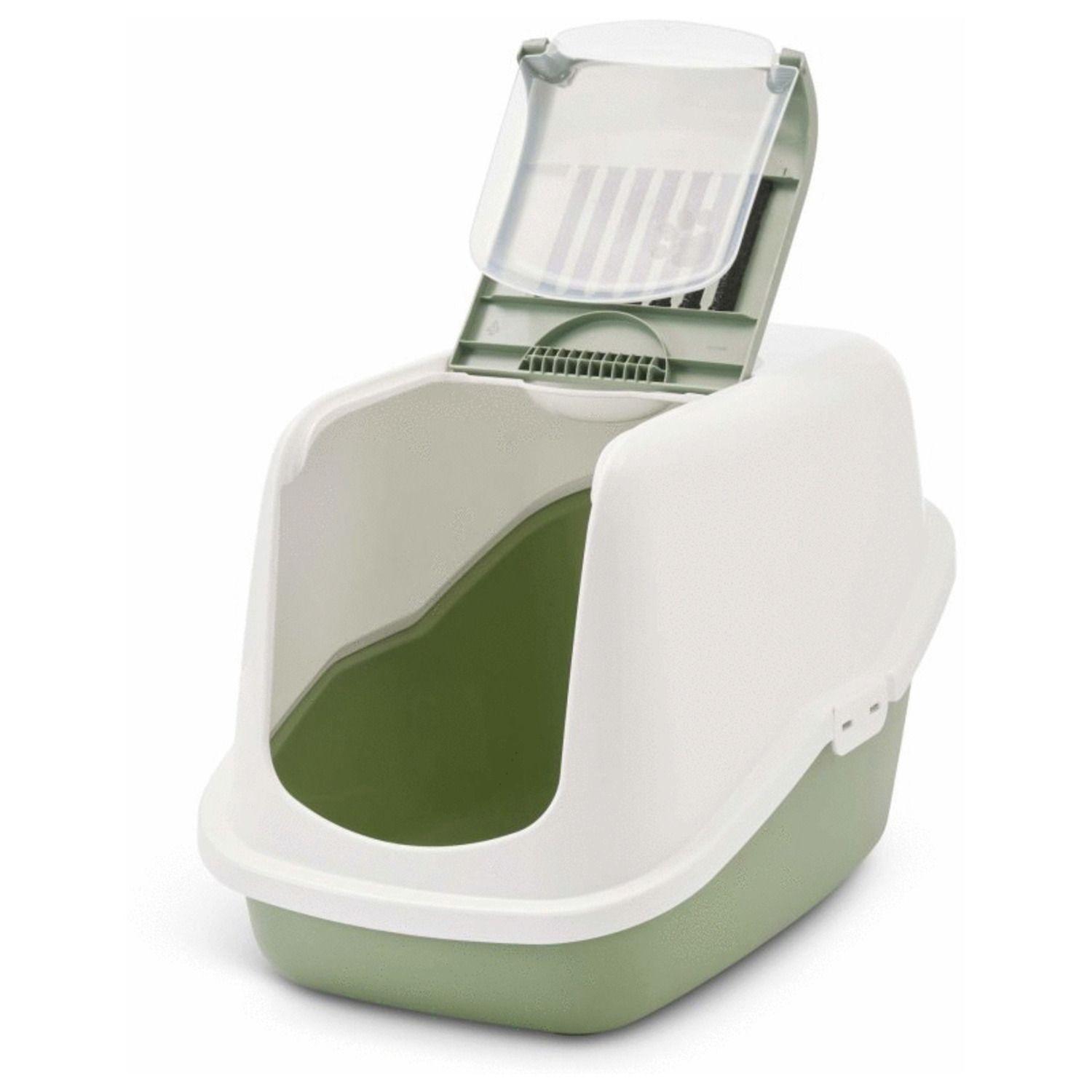 De Beeztees Nestor kattenbak is een mooi vormgegeven kattenbak. Bij deze gesloten kattenbak is het niet nodig om de gehele bovenkap te verwijderen als je de bak wilt schoonmaken. Je kunt namelijk het deurtje en het binnenste gedeelte van de bovenzijde in een handomdraai naar boven klappen om vervolgens de kattenbak schoon te maken. De kattenbak bevat een filter om nare geuren te verminderen. De hoge rand aan de achterkant voorkomt dat urine in de randen loopt – ideaal voor katten die staand plassen! Als jouw kat nog moet wennen aan een gesloten kattenbak, kun je de bovenkap volledig verwijderen. Handig ook bij het volledig vervangen van de kattenbakvulling. De transparante deur zorgt ervoor dat je kat de omgeving in de gaten kan houden tijdens zijn of haar behoefte.