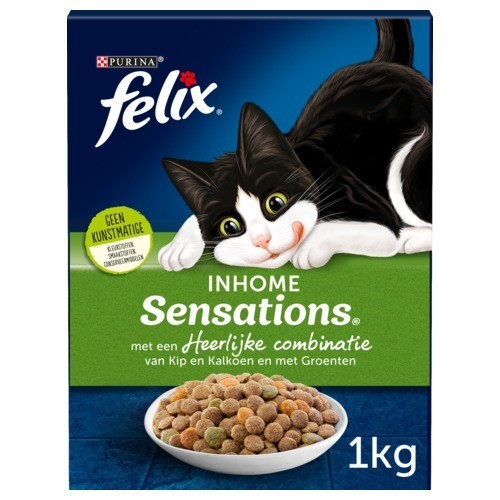 FELIX® Inhome Sensations maaltijden zien, ruiken en smaken natuurlijk heerlijk voor jouw kat. Iedere kleurrijke maaltijd is speciaal ontwikkeld voor katten die voornamelijk binnen leven, en zit boordevol heerlijke, knapperige vormen en sensationele smaken. FELIX® Inhome Sensations zijn 100% volledig en uitgebalanceerd. Dat is nog niet alles! Met FELIX® Inhome Sensations weet je dat je geliefde deugniet, die het liefste binnen is, alle smakelijke goedheid krijgt die hij nodig heeft om te blijven genieten van een sensationaal leven vol kattenkwaad!