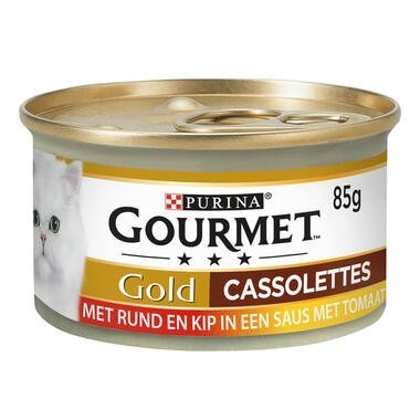GOURMET™ Gold heeft Cassolettes ontwikkeld, heerlijke recepten kattenvoer om haar verfijnde smaak dagelijks te verwennen met een andere smaakbeleving. Fijne stukjes met rund, kip, vis of andere heerlijke smaken, langzaam gekookt in een sappige en verfijnde saus. Elke saus is zorgvuldig geselecteerd om een optimale combinatie met de smaak van de stukjes te creëren, voor een harmonie van texturen en smaken.