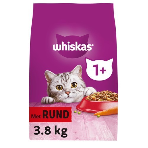 WHISKAS® 1+ droge brokjes rund is volledige en gebalanceerde voeding met een optimale balans van vitaminen en mineralen, om te helpen de best mogelijke verzorging te geven aan uw volwassen kat.
