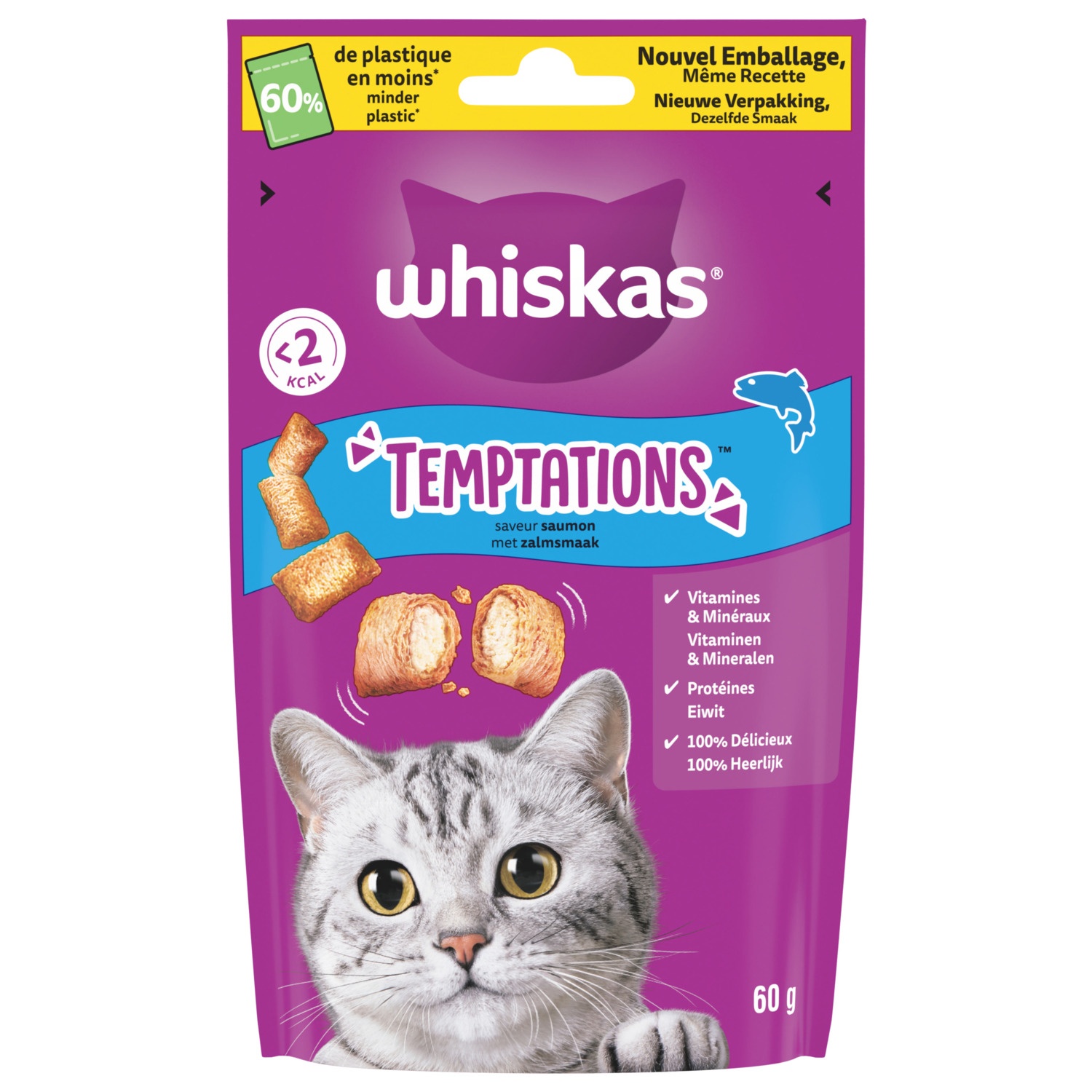 WHISKAS® Temptations hebben een krokante laag en een zachte, smaakvolle binnenkant.