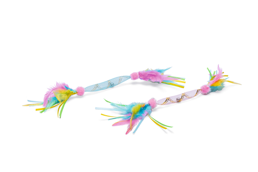De Beeztees Kitten Flori is een vrolijke set kattenspeeltjes die jouw kitten eindeloos vermaak biedt! Deze set bevat twee mesh buisjes, elk in een andere tint, perfect voor speelse avonturen. In het midden van elk buisje zit een belletje dat zachtjes rinkelt bij elke beweging en je kitten nieuwsgierig maakt. Aan de uiteinden zitten kleurrijke veertjes en sliertjes die uitnodigen tot slaan, grijpen en jagen. Ideaal om het natuurlijke jachtgedrag van je kitten te stimuleren en hem of haar actief te houden!