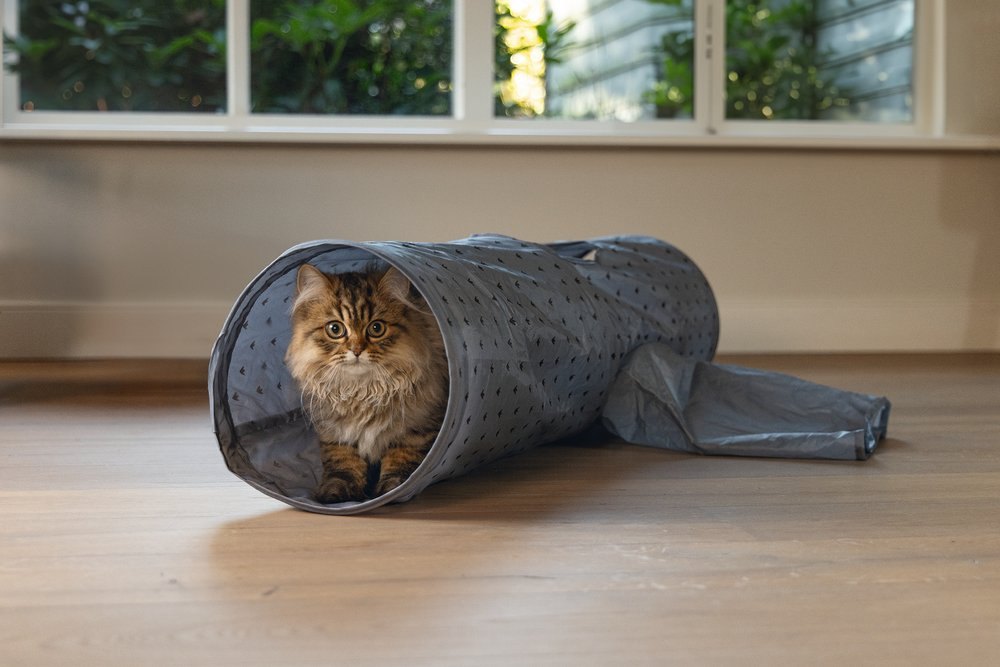 Wanneer je op zoek bent naar een unieke kattentunnel, dan is de Beeztees Kattentunnel Ivy echt wat voor jou! Deze nylon kattentunnel is extra leuk door de toevoeging van een extra opening met flap. Hierdoor kan je kat kiezen uit meerdere ingangen om mee te spelen en te verkennen. De flap maakt het extra spannend en zorgt voor een interactief spelletje waarbij je kat zich kan verstoppen, sluipen of onverwachts tevoorschijn kan komen. De Kattentunnel Ivy is niet alleen leuk voor spelletjes, maar biedt ook een fijn plekje waar je kat zich even terug kan trekken. Bovendien is de tunnel lichtgewicht en gemakkelijk te verplaatsen, zodat je hem in elke kamer kunt neerzetten. Is je kat uitgespeeld? Dan vouw je de tunnel eenvoudig plat op.