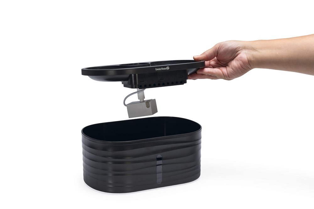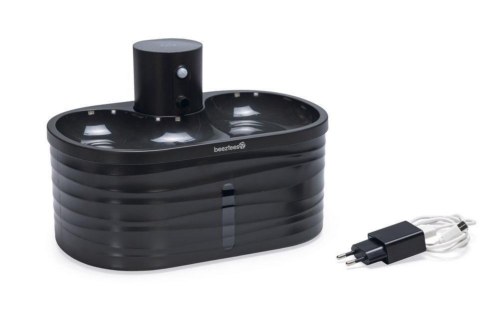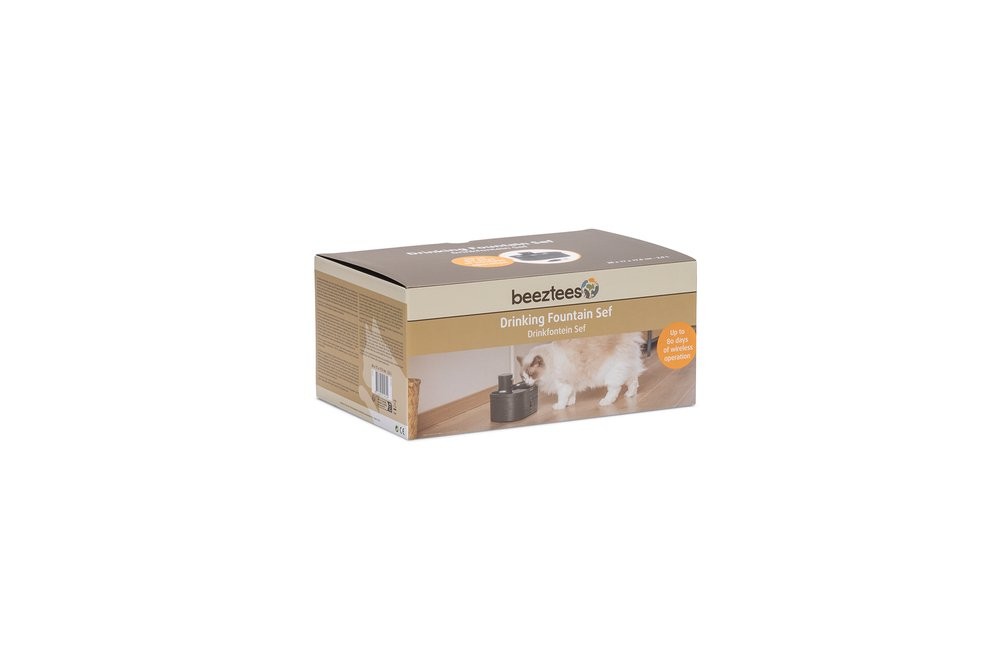 Met de Beeztees Sef Drinkfontein heeft je kat altijd toegang tot vers water. De fontein heeft een capaciteit van 2,5 liter en werkt tot wel 80 dagen op een volle batterij. Het transparante venster laat je zien wanneer het tijd is om water bij te vullen. Deze drinkfontein is eenvoudig in elkaar en uit elkaar te halen, zodat je hem eenvoudig kunt schoonmaken. Je kunt kiezen uit verschillende watermodi: timer, interval of continue stroming. En mocht er een stroomuitval zijn, dan blijft er altijd 200 ml water in de kom beschikbaar. De drievoudige filtratie zorgt voor lekker schoon water, en de speciale wateruitlaat maakt minder geluid, zodat je kat rustig kan drinken. De slimme systemen geven je een seintje bij een laag batterij- of waterniveau en stoppen de pomp als er geen water meer is.