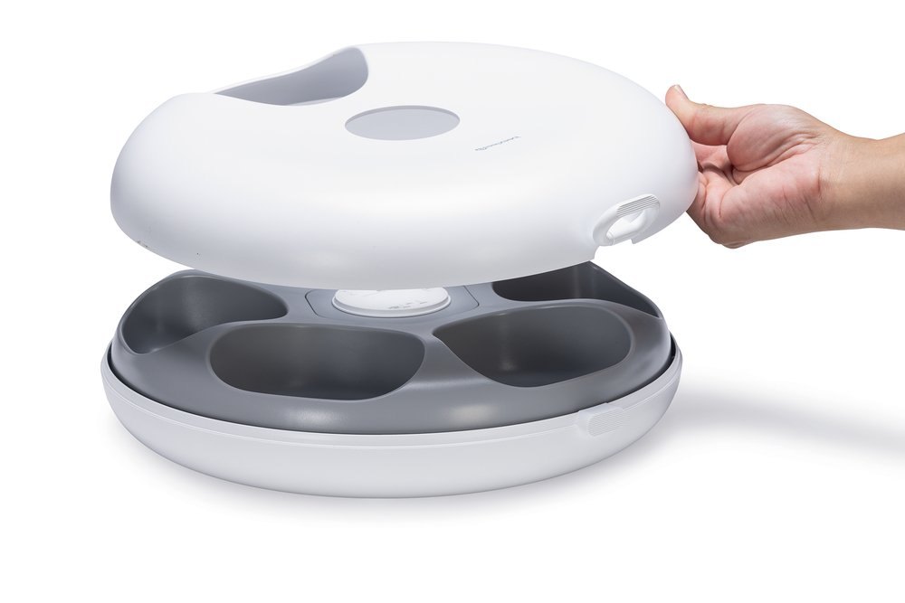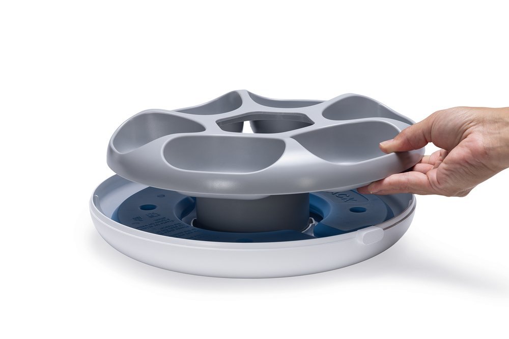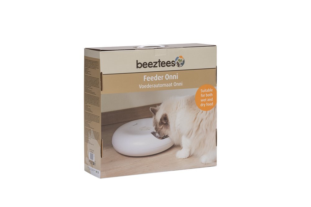 Beeztees Automatische Voerbak Onni is de ideale automatische voerbak voor katten en kleine honden. Met een capaciteit van 6 bakjes van 180 ml biedt deze voerautomaat ruimte tot 6 maaltijden per dag. Deze voerautomaat is ontworpen voor zowel nat- als droogvoer. Het wordt geleverd met 2 uitneembare koelelementen die in de vriezer kunnen worden geplaatst en het voer tot wel 24 uur vers houden. De voerautomaat is ontworpen voor eenvoudig onderhoud; 90% van de onderdelen zijn demonteerbaar en kunnen in de vaatwasser worden gereinigd, met uitzondering van de hoofdunit. De voerbak werkt op een USB-oplaadbare 3600 mAh lithiumbatterij, die na 6-8 uur opladen tot 30 dagen meegaat. Een handige oplaadindicator waarschuwt je wanneer de batterij bijna leeg is.