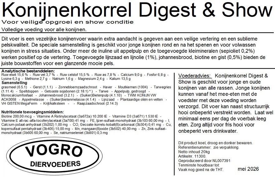 NIEUW! Vogro Konijnenkorrel Digest & Show 20kg