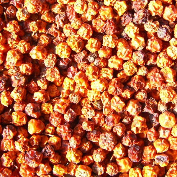 Gedroogde bessen kunnen gemalen worden en door het eivoer mengen.