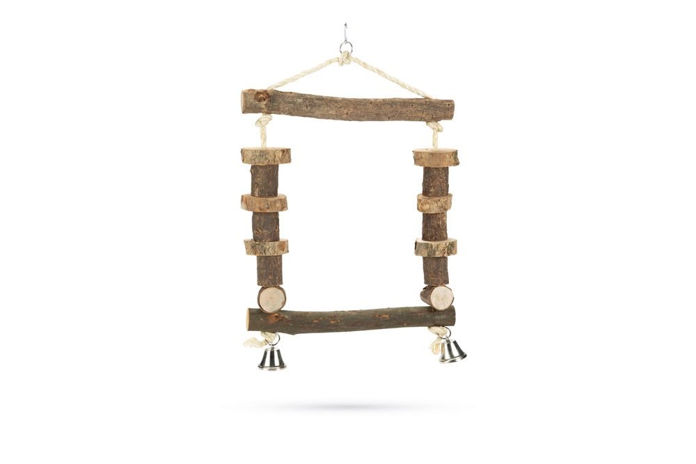 Naast een ladder, mag eigenlijk ook een schommel niet ontbreken in een vogelkooi. De Beeztees Tomi vogelschommel zal jouw vogel erg leuk vinden. Normaal gesproken zitten vogels buiten op takken die heen en weer bewegen door de wind. Door middel van een schommel kan jouw vogel toch nog zijn evenwichtstraining doen en op een natuurlijke manier heen en weer schommelen. Deze Tomi schommel is gemaakt van hout en touw en bevat leuke belletjes aan de onderkant. Oftewel perfect vogelspeelgoed!