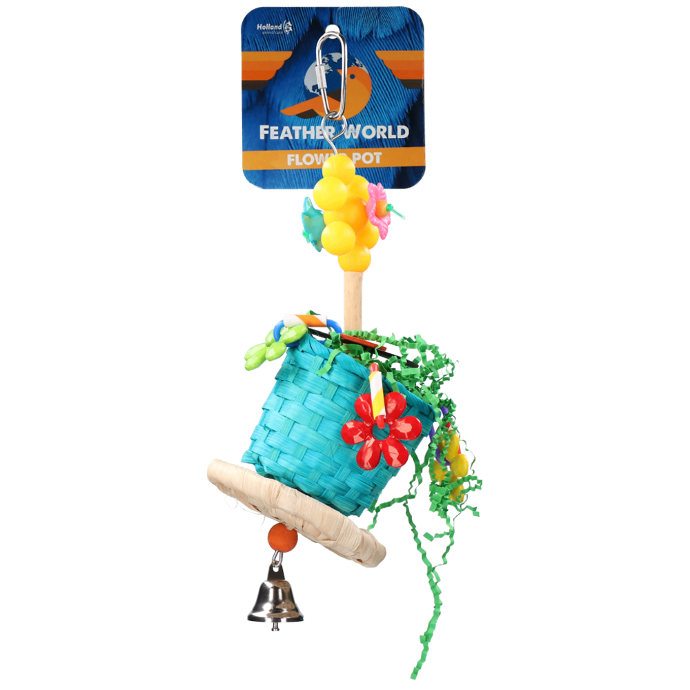 Feather World Flower pot Deze vrolijke bloempot is speciaal ontwikkeld voor vogels. Het kan makkelijk in de kooi worden gehangen en zit boordevol leuke details, zoals bamboe en een belletje. Vrolijk Helpt verveling te voorkomen Verschillende materialen Geschikt voor Valkparkiet, caique en soortgelijke vogels. Formaat totaal met ophangketting 30 cm Lees meer...