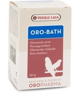 Oropharma Oro-Bath is een speciaal badzout voor glanzende veren. Dit verzorgingsproduct versoepelt de veren, houdt pootjes en huid vrij van schilfertjes en geeft glanzende veren. Oro-Bath heeft een relaxerende werking, ontspant de spieren en reinigt huid en veren. Het is een algemeen bekend feit dat vogels graag baden en dat ze het ook nodig hebben. Het baden op regelmatige basis is essentieel voor het onderhoud van de veren. Door toevoeging van Oro-Bath aan het badwater krijgen de vogels soepele veren en wordt de sterkte en waterafstotende werking van de bevedering onderhouden.