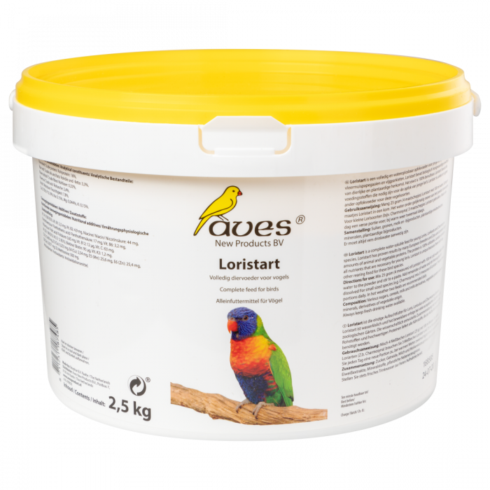 Aves Loristart is een volledig en wateroplosbaar opfokvoeder voor jonge lori’s, vleermuispapegaaien en vijgpapegaaien.