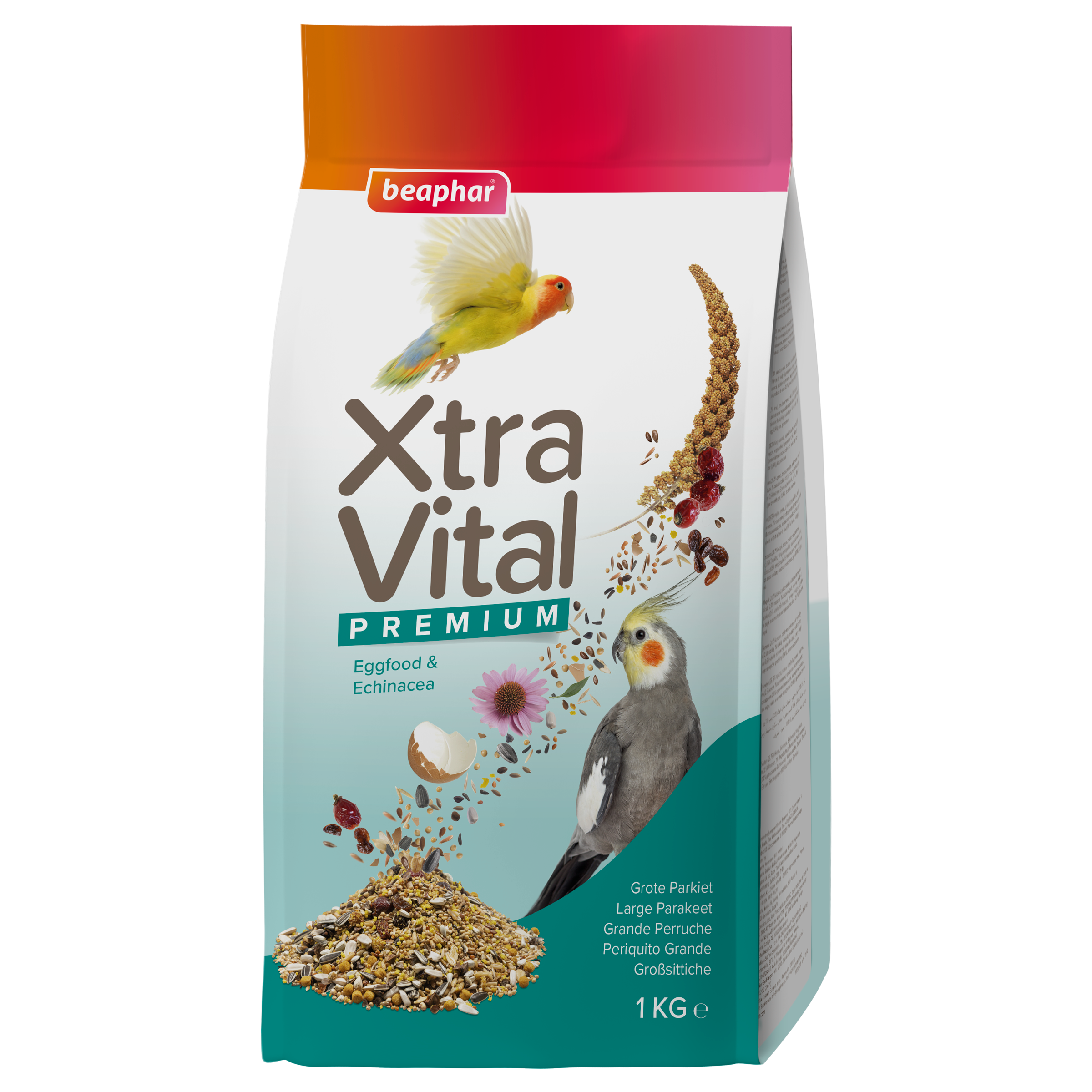 Beaphar XtraVital Grote Parkiet is een smakelijk en compleet premium voer met een gevarieerde samenstelling van o.a. zaden, vruchten, eivoer (20%), grit, vitaminen en mineralen van hoge kwaliteit. Aan deze uitgebalanceerde voeding hoeft niets meer toegevoegd te worden. XtraVital draagt bij aan een gezonde en levenslustige Agapornis of Valkparkiet.