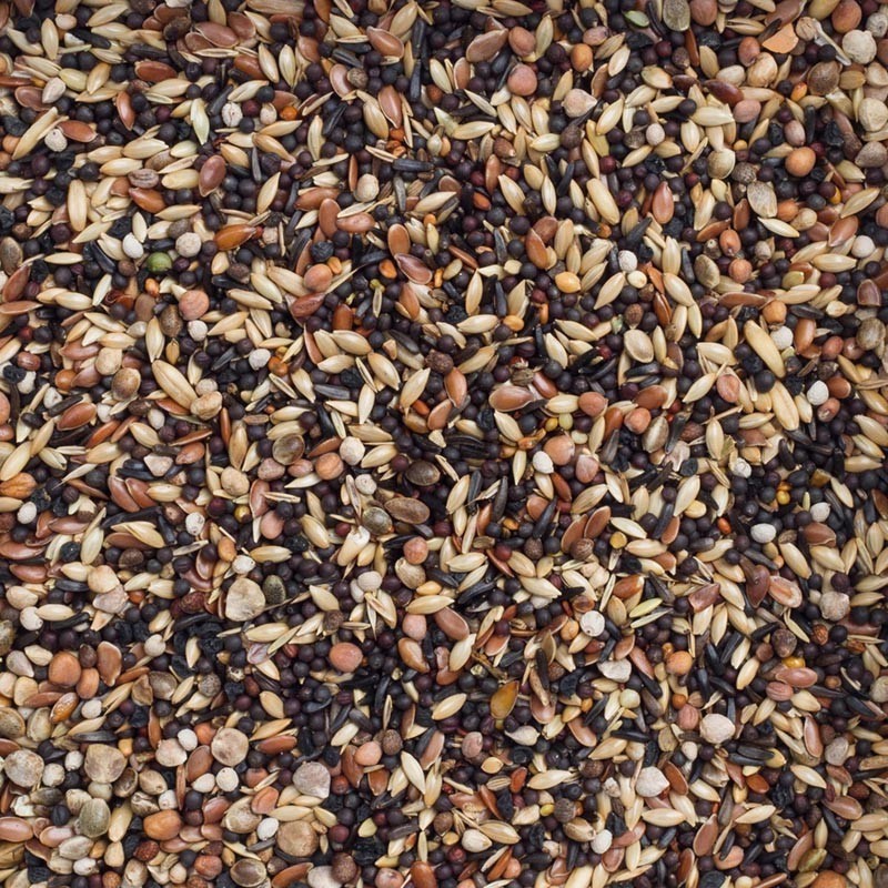 Gevarieerde samenstelling op basis van kleinere zaadsoorten (bv kanariezaad, perilla, nigerzaad, raapzaad,…).
