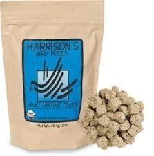 Harrison’s Bird Foods is verkrijgbaar als Coarse, Fine, Super Fine en Mash.