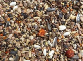 lijnzaad, mariadistel,wilde zaden, negerzaad, perilla, boekweit, haver gepeld, haver gebroken, kardi, hennep, witzaad, raapzaad, zonnepitten, cichoreizaad, koolzaad, millet.