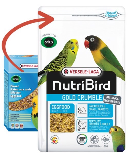 Droog eivoer voor grasparkieten, neophema’s, agaporniden,... Bevat alle bestanddelen die jonge en volwassen siervogels nodig hebben tijdens kweek, groei en rui: eiwitten, vitaminen, sporenelementen, mineralen en essentiële aminozuren (lysine, methionine). Met extra jodium, voor een goede schildklierwerking. Volledige opname door de lekkere smaak en een structuur aangepast aan de vogelsoort. Met lysine en methionine, voor een optimale groei en vederopbouw.