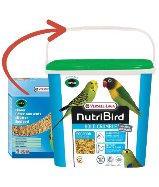 Onbeperkt ter beschikking stellen tijdens de kweek en de rui. De rest van het jaar 2 à 3 keer per week een portie voeren. Rul maken met enkele druppels water, kiemzaad,... Regelmatig verversen.