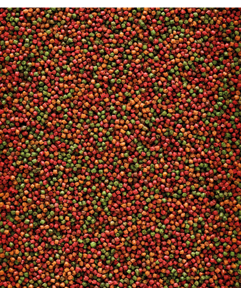 Naar believen verstrekken, in combinatie met vers fruit en/of levend voer.