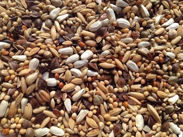Volledig diervoeder voor vogels, zonder zonnepitten.