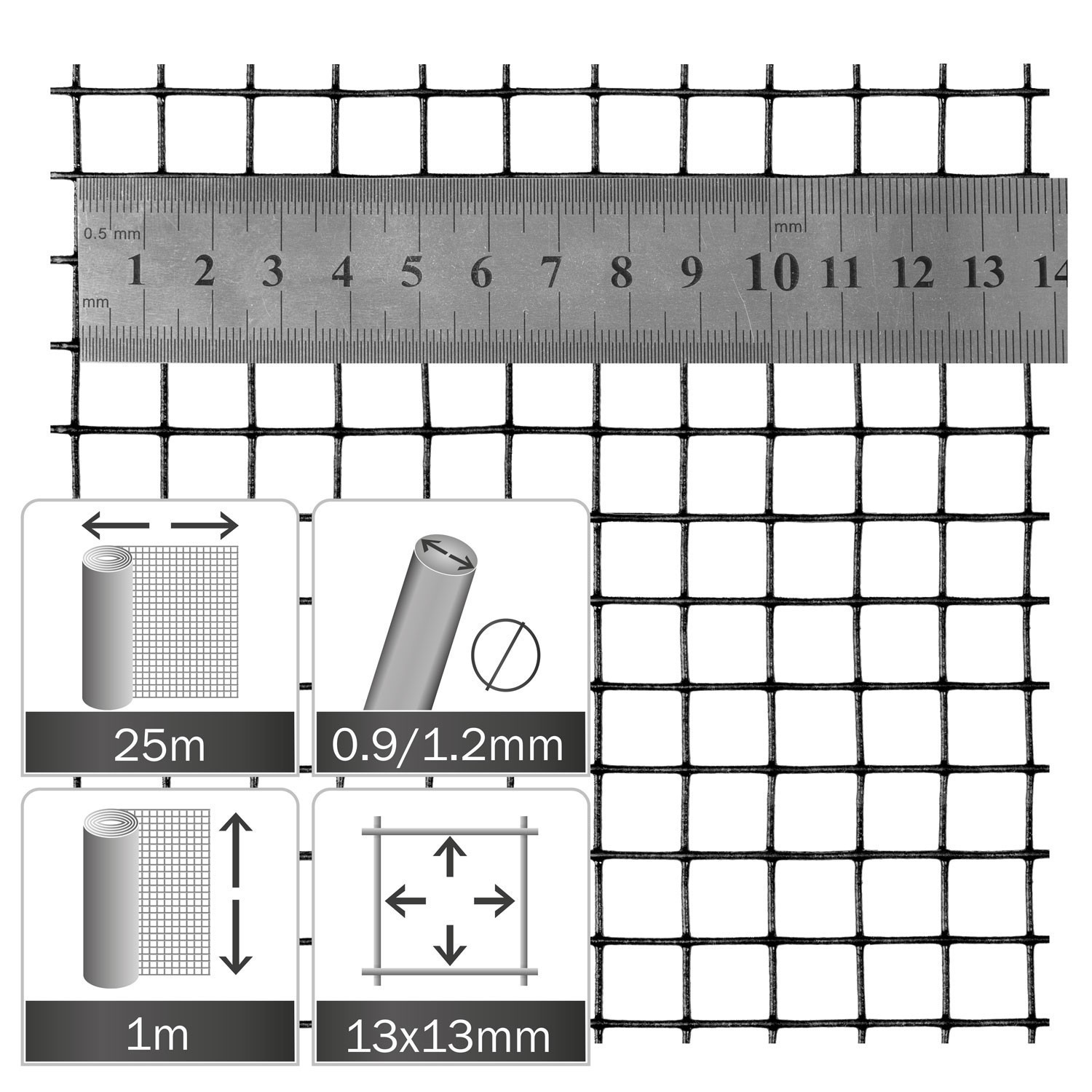 Gaas ZWART Geplasticifeerd 13x13x0.9/1.2 100cm 25m