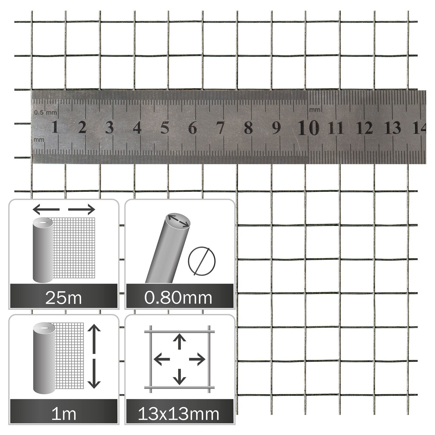 Mazen 13x13 mm draad 0.80 mm, rol 1x25 m
